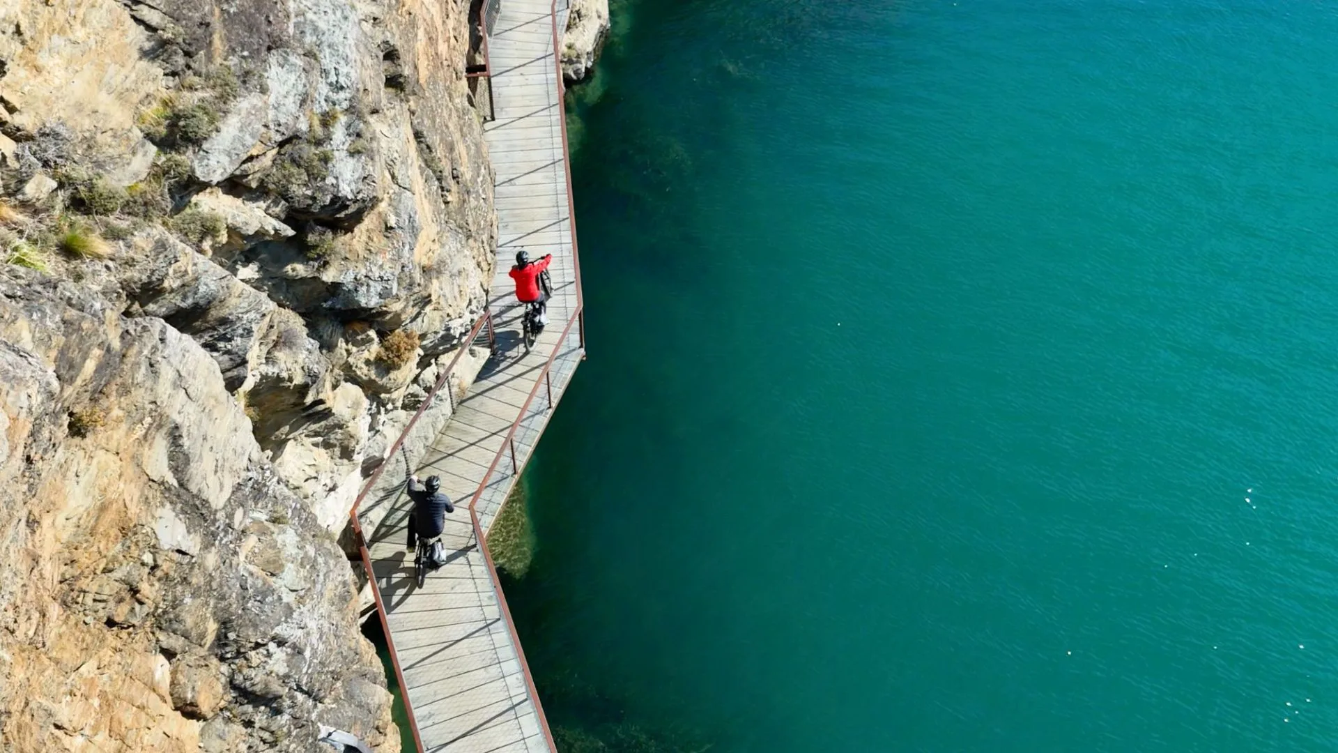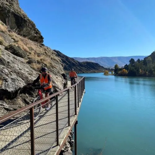 A breathtaking ride on the Lake Dunstan Trail, where the path is literally carved into the cliffs.